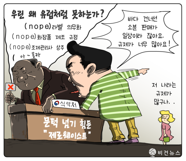 [비건만평] 규제가 가로막는 제로웨이스트…유럽서는 되는데 한국은 왜?