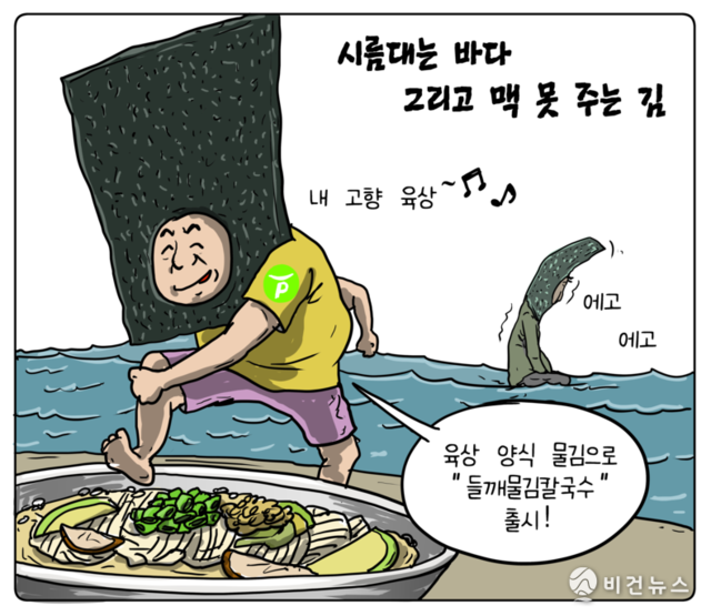 [비건만평] 바다서 맥 못추는 김, 이젠 육상 김 양식 시대
