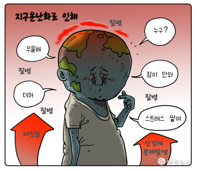 [비건만평] 기후변화에 치매·우울증 등 뇌 질환 늘어난다