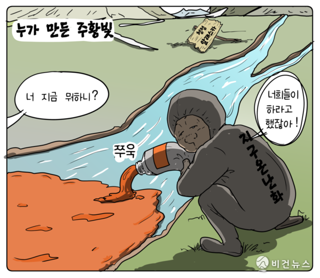 [비건만평] 주황색이 된 알래스카 강물…범인은 '지구온난화'