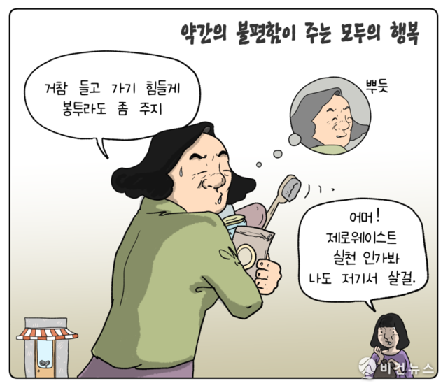 [비건만평] "약간의 불편함이 주는 모두의 행복" 제로웨이스트 삶