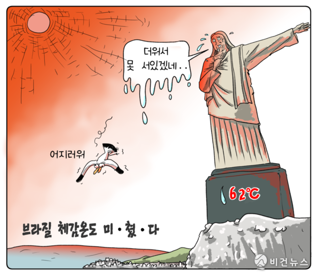 [비건만평] 브라질, 체감 온도 62도 폭염에 물폭탄 홍수까지…최악의 기상이변