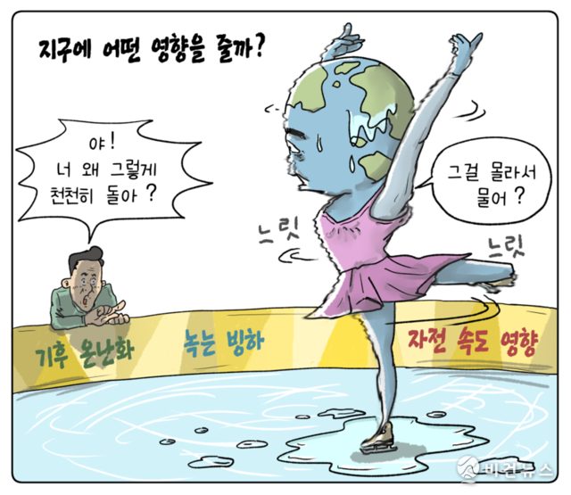 [비건만평] "1초 사라질 전망" 기후변화로 빙하 녹자, 지구 자전 속도 느려져