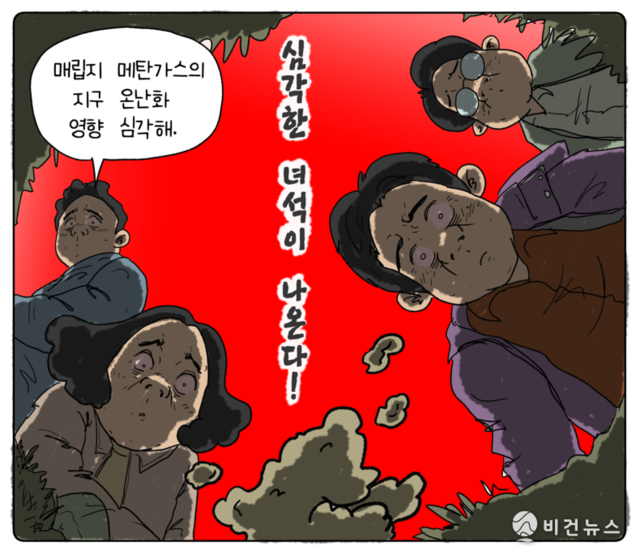 [비건만평] "심각한 녀석이 온다" 매립지 배출 메탄가스, 온난화 심화시켜
