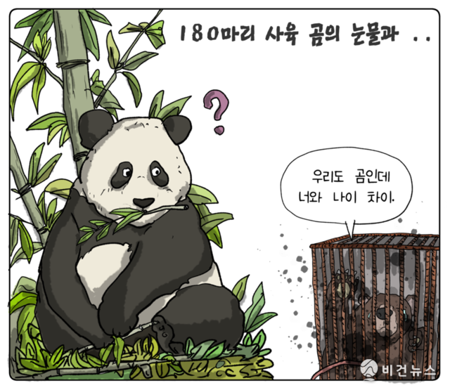 [비건만평] "같은 곰인데 판다만 귀여워해" 180마리 사육곰의 눈물
