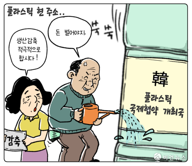 [비건만평] '국제 플라스틱 협약’ 개최하는 韓, 생산 감축 적극적으로 고려해야