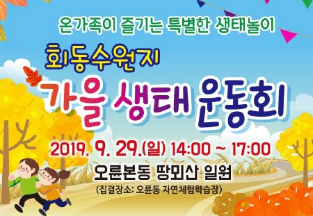 이번 가을 생태운동회는 가족단위 120명을 선착순 모집하고 참가비는 1인 5천원으로 '회동수원지 소풍여행 홈페이지'나 카카오톡 플러스 친구를 통해 신청할 수 있다.
