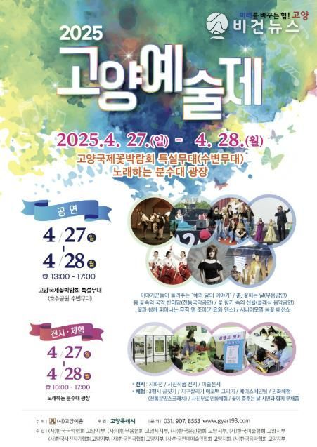 [비건뉴스=최지영 수습기자] 고양특례시은 오는 27일~28일, 일산호수공원 고양국제꽃박람회 특설무대와 노래하는 분수광장에서 ‘2025 고양예술제’가 열린다고 밝혔다.