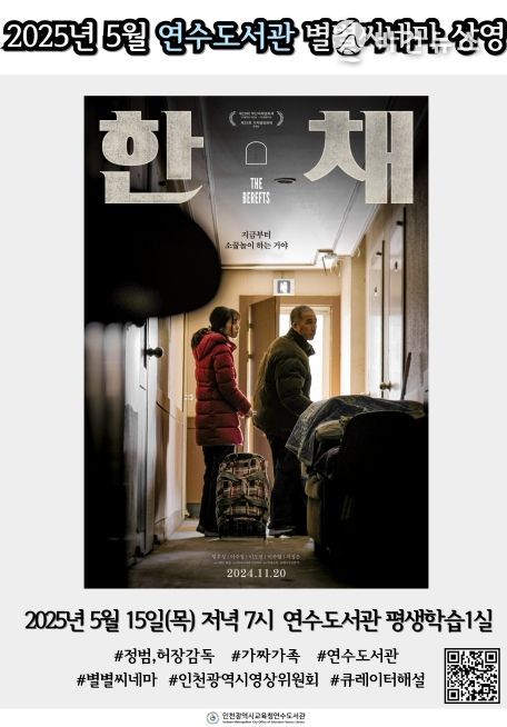 [비건뉴스=최지영 수습기자] 인천광역시교육청연수도서관은 5월 ‘별별씨네마’로 정범, 허장 감독의 영화 ‘한 채’를 상영한다.