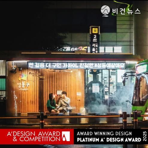 [비건뉴스=최지영 수습기자] 서울 성동구의 ‘성동형 스마트쉼터’가 국내 지방자치단체 최초로 국제 디자인 공모전 ‘A 디자인 어워드 2025(A' Design Award · Competition 2025)’에서 최고 등급인 플래티넘(Platinum) 등급을 수상하는 영예를 안았다.