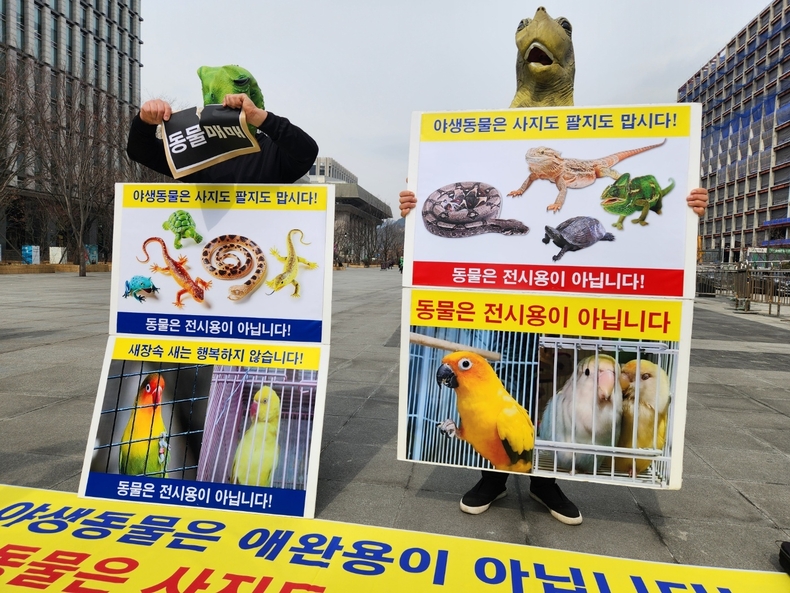 한국동물보호연합은 28일 오후 1시 광화문 이순신 동상 앞에서 ‘세계 야생동식물의 날’을 기념하는 기자회견을 열고 야생동물을 사고 파는 행위를 멈출 것을 촉구했다.