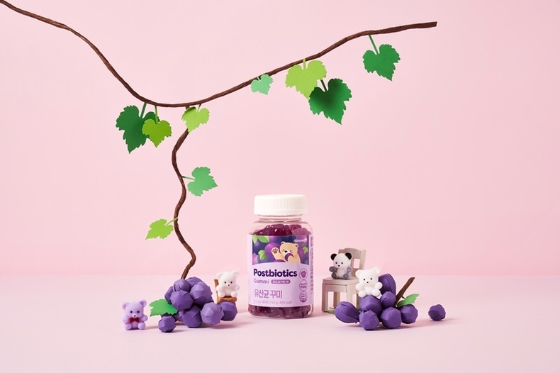 ‘네추럴라이즈 유산균 꾸미’는 편식이 심한 아이들을 위해 19가지의 채소와 과일을 넣어 영양 밸런스를 챙기고, 지방·트랜스지방·콜레스테롤은 모두 0%로 낮춘 건강한 간식으로 제작됐다. 또한 시중에 널리 판매 중인 꾸미나 젤리 제품들의 주성분인 동물성 젤라틴을 사용하지 않고, 감귤류에서 추출한 비건 인증 식물성 펙틴을 사용해 보다 안심하고 섭취할 수 있다. 귀여운 곰 발바닥 모양의 맛있는 포도 요거트 맛 꾸미로 제작해 아이들이 간식처럼 쉽게 즐길 수 있도록 했다.