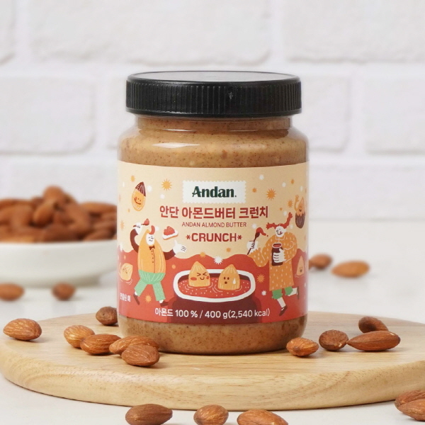 ‘안단 아몬드버터’는 100% 아몬드 사용으로 영양가가 높고 고소한 맛이 풍부하며, 안단잼의 철학에 따라 불필요한 첨가물과 설탕을 배제했다. 부드러운 크리미 타입과 아몬드 입자가 살아있는 크런치 타입 두 가지로 선보인다.