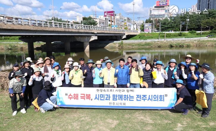 [비건뉴스=최지영 수습기자] 전주시의회가 최근 폭우로 인해 피해가 발생한 전주천 일대에서 대대적인 수해복구 봉사활동을 펼쳤다.