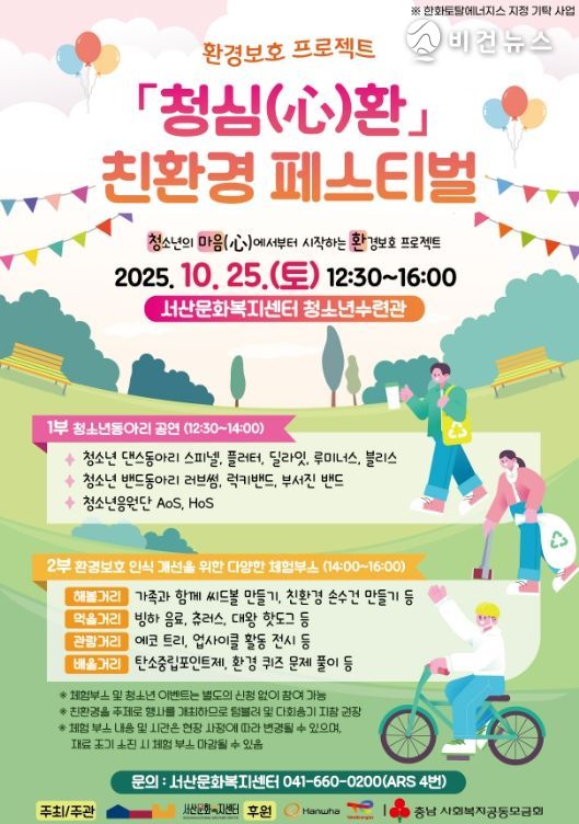 환경보호 프로젝트 ‘청심(心)환’은 ‘청소년의 마음(心)에서부터 시작되는 환경보호 프로젝트’라는 뜻으로, 서산문화복지센터가 주최·주관하고 한화토탈에너지스와 충남사회복지공동모금회가 후원하는 사업이다.