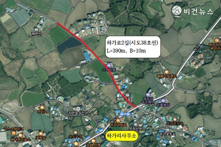 [비건뉴스=최지영 수습기자] 제주시는 애월읍 하가리 시도 38호선(L=390m, B=10m) 구간에 대한 도로 확·포장 공사를 마무리하고 9월 준공했다.
