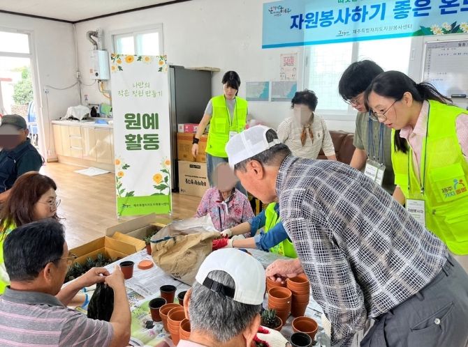[비건뉴스=최지영 수습기자] 제주특별자치도사회서비스원은 지난 9월 30일, 성산읍 신풍리경로당에서 어르신들과 함께하는 원예 자원봉사 활동을 실시했다.