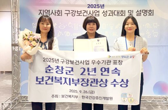 [비건뉴스=최지영 수습기자] 순창군이 전국 지방자치단체를 대상으로 열린 ‘2025년 구강보건사업 성과대회’에서 우수기관으로 선정돼 보건복지부 장관 표창을 수상했다.