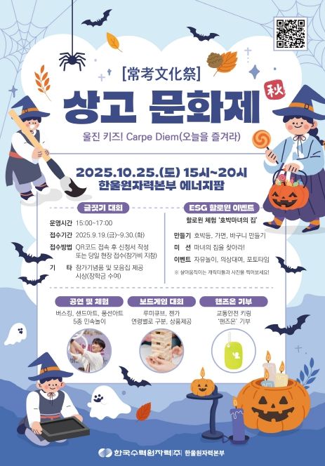 [비건뉴스=최지영 수습기자] 한국수력원자력(주) 한울원자력본부)는 10월 25일 15시 한울에너지팜에서 제2회 ‘한울 상고문화제 가을(秋)편’ '울진 키즈! Carpe Diem(오늘을 즐겨라)'를 개최한다.