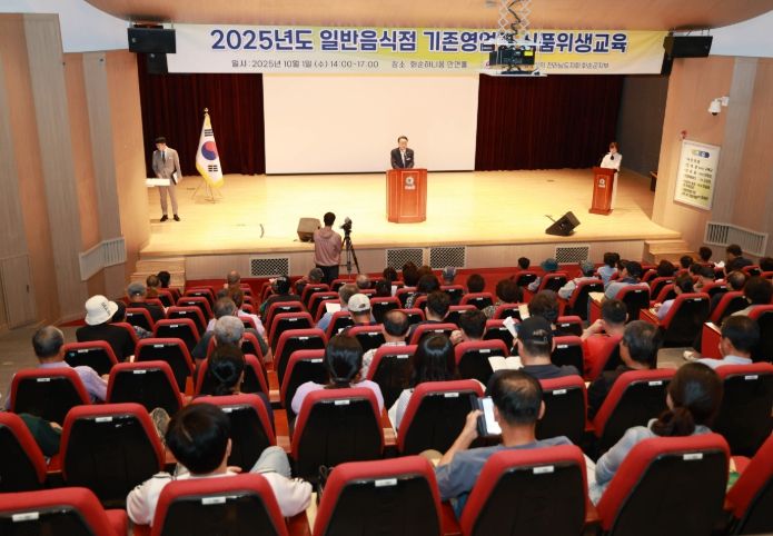 [비건뉴스=최지영 수습기자] 화순군과 (사)한국외식업중앙회 전라남도지회 화순군 지부(지부장 이향심)는 지난 10월 1일 하니움스포츠문화센터 만연홀에서 관내 일반음식점 영업주 200여 명을 대상으로 '2025년도 일반음식점 영업자 위생교육을 진행했다.