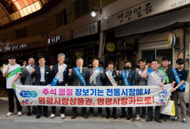 이번 행사에서는 영광군수, 국회의원, 도의원, 군의원, 공직자, 유관기관 등 300여 명이 참여해 영광사랑상품권으로 제수용품과 농·수산물 등을 구입하며 지역경제 살리기에 힘을 보탰다.