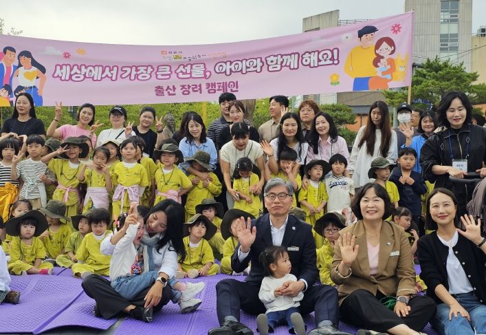 캠페인은 저출산 시대에 출산의 가치와 중요성을 알리고, 긍정적인 출산 문화를 확산하기 위해 마련됐다. 아이들은 아기 인형을 안고 직접 만든 전단지를 주민들에게 나눠주며 출산 장려 구호를 외쳤다.