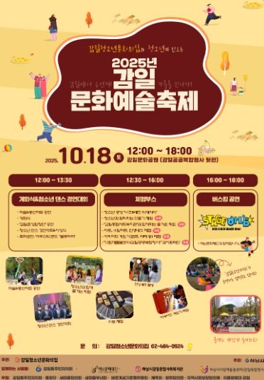 지난해 처음 열린 감일문화예술축제는 청소년이 주체가 되어 운영한 축제로 지역사회에 큰 호응을 얻었다. 올해도 ‘청소년이 만드는 제2회 감일문화예술축제’라는 슬로건 아래, 청소년들이 직접 준비한 체험거리와 볼거리, 그리고 지역주민이 함께 어울릴 수 있는 다채로운 프로그램이 마련된다.