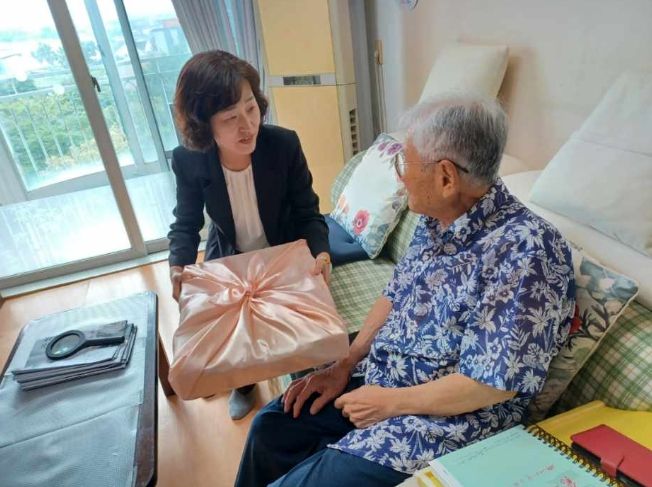 이날 방문한 곳은 제주시에 거주하는 93세 6․25 참전 유공자와 96세 무공수훈유족, 75세 참전유공자(전상군경) 가구다. 보훈청은 세 가구에 한과선물세트를 위문품으로 전달했다.