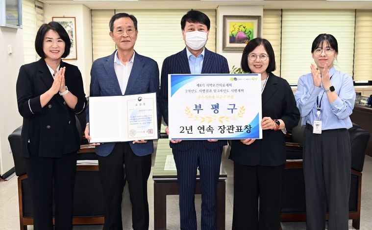 [비건뉴스=최지영 수습기자] 부평구는 보건복지부 주관 ‘2025년 지역보건의료계획 우수 지자체 평가’에서 시군구 부문 우수 기관으로 선정돼 보건복지부 장관 표창을 수상했다고 2일 밝혔다.