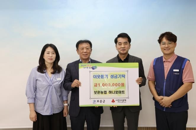 최재형 군수는 “지역의 상생을 위해 따뜻한 나눔을 실천해 주신 보은농협 하나로마트 관계자분들께 감사드린다”며 “기탁된 성금은 도움이 꼭 필요한 군민들에게 소중히 전달하겠다”고 말했다.