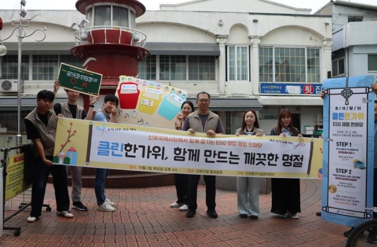 [비건뉴스=최지영 수습기자] 인천중구시설관리공단 임직원은 지난 2일 신포국제시장에서 추석맞이 친환경·청렴 문화 확산을 위한 ‘클린 한가위’ 캠페인을 진행했다.