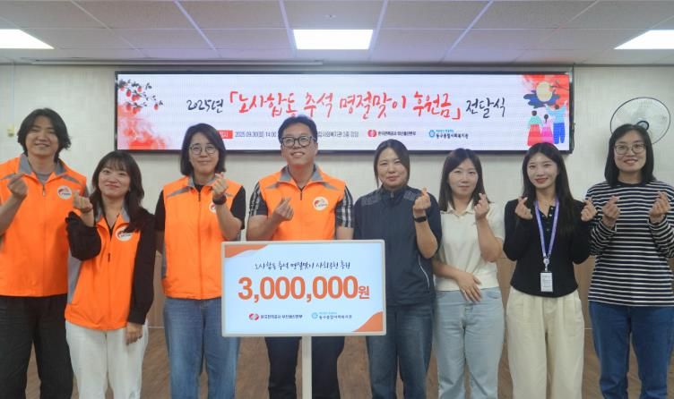 [비건뉴스=최지영 수습기자] 부산 동구종합사회복지관은 지난 9월 30일, 추석 명절을 앞두고 한국전력공사 부산울산본부로부터 노사 합동으로 마련한 300만 원의 후원금을 전달받았다고 밝혔다.