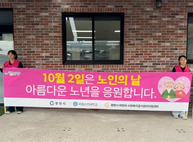[비건뉴스=최지영 수습기자] 광양시 어린이·사회복지급식관리지원센터는 지난 10월 2일 노인의 날을 맞아 광양시 가가호호주야간보호센터 앞에서 시민과 어르신을 대상으로 캠페인을 전개했다.