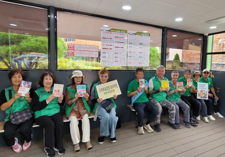 [비건뉴스=최지영 수습기자] 효령면 새마을회가 버스를 기다리는 주민들을 위해 스마트승강장 내 책꽂이에 도서를 기증하며 따뜻한 정서지원 활동을 이어가고 있다.