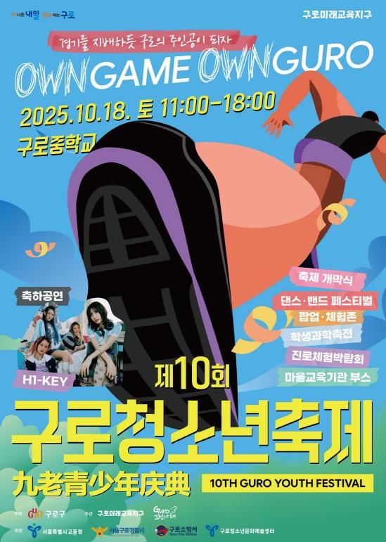장인홍 구로구청장은 “청소년들이 직접 기획한 이번 축제가 서로 배우고 소통하며 미래를 그려가는 의미 있는 시간이 되기를 바란다”며 “참여한 모든 분들이 안전하고 즐겁게 축제를 즐기시길 바란다”고 전했다.