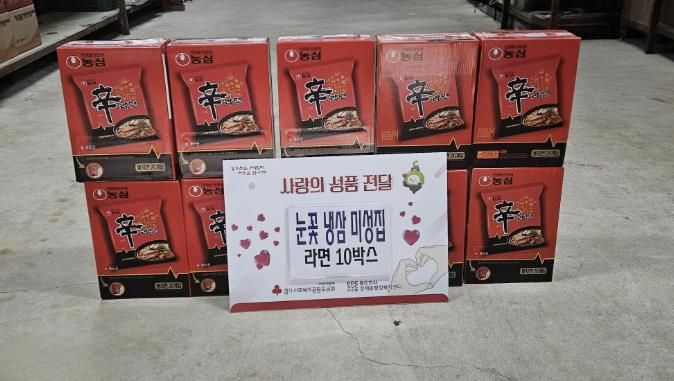 [비건뉴스=최지영 수습기자] 동두천시 상패동 행정복지센터는 눈꽃 냉삼 미성집이 관내 저소득 가구를 위해 라면 10박스를 기탁했다고 밝혔다.