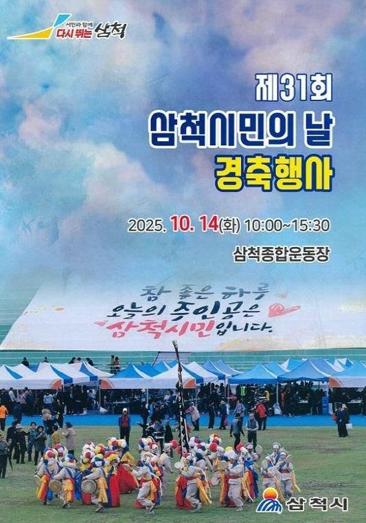 [비건뉴스=최지영 수습기자] 삼척시민의 단결과 화합, 애향심과 자긍심을 고취하기 위한 제31회 삼척시민의 날 기념 경축 행사가 오는 10월 14일 오전 10시 삼척종합운동장에서 열린다.