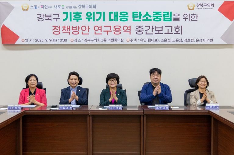 [비건뉴스=최지영 수습기자] 강북구의회 의원연구단체인 ‘강북구 기후위기 대응 탄소중립을 위한 연구회’ (대표의원 유인애)는 지난 9월 9일 의회 3층 의원회의실에서 중간보고회를 열었다.