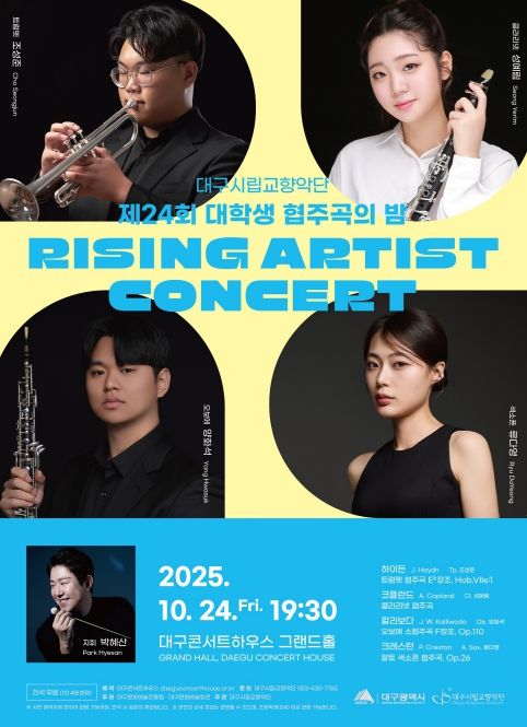 [비건뉴스=최지영 수습기자] 대구·경북 젊은 연주자들의 가능성을 무대 위에 실현하는 대구시립교향악단 ‘대학생 협주곡의 밤 : 라이징 아티스트 콘서트’가 올해로 24회를 맞는다.