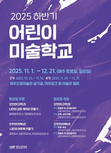 [비건뉴스=최지영 수습기자] 제주특별자치도 도립미술관(관장 이종후)은 10월 25일부터 12월 21일까지 ‘2025 어린이 미술학교’ 하반기 교육프로그램을 운영한다.