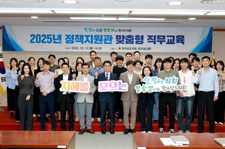 [비건뉴스=최지영 수습기자] 전라남도의회는 10월 13일, 도의회 초의실에서 소속 정책지원관과 직원을 대상으로 ‘맞춤형 직무교육’을 실시했다.