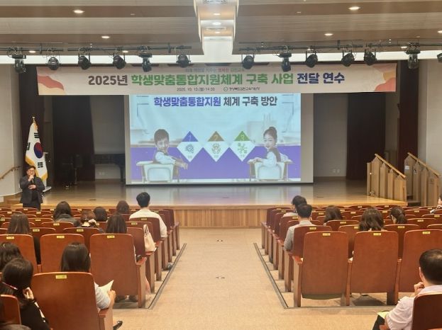 [비건뉴스=최지영 수습기자] 경상북도 김천교육지원청은 10월 13일 월요일, 김천학생문화예술센터 드림마루에서 관내 52개 초‧중‧고등학교 행정실장 및 업무담당자를 대상으로 2025년 학생맞춤통합지원체계 구축을 위한 전달 연수를 개최했다.