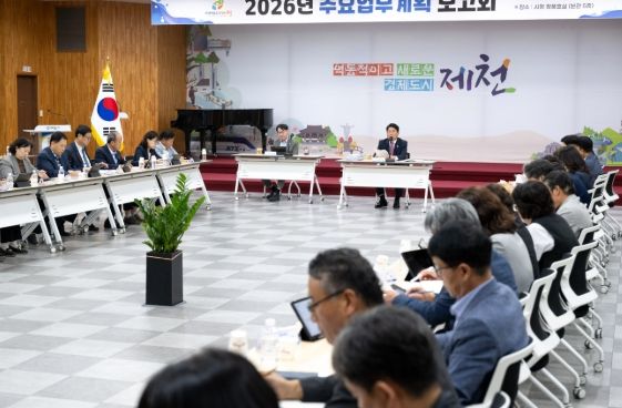 [비건뉴스=최지영 수습기자] 제천시는 지난 13일 시청 청풍호실에서 김창규 시장 주재로 국장 및 직속기관장, 부서장이 참석한 가운데 2026년 주요업무계획 보고회를 개최했다.