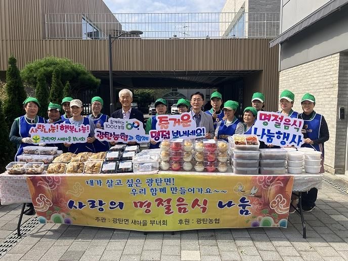 새마을부녀회 회원들은 이른 아침부터 모여 정성스럽게 재료를 직접 손질하여 불고기, 전, 삼색나물 등 각종 추석 음식을 만들었으며, 이 행사에는 광탄면 지역사회보장협의체 위원들도 함께 했다.