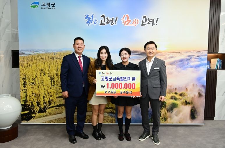 고령군(군수 이남철)은 지역교육 활성화를 위하여 선뜻 큰 금액을 기탁해주신 코코찜닭 김현진 대표님과 공주분식 이선희 대표님께 고마움을 표하고 “어려운 경제여건 속에서도 교육발전을 위해 기탁해주셔서 깊이 감사드린다.”며 “앞으로 기부문화가 더욱 활성화되어 서로 돕는 따뜻한 지역 분위기를 조성하고, 모두가 함께 성장할 수 있는 고령을 만들어 나가도록 노력하겠다.”고 전했다.