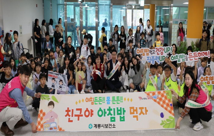 [비건뉴스=최지영 수습기자] 계룡시는 14일 계룡대실초 학생 및 교직원 506명을 대상으로 “친구야! 아침밥 먹자” 등굣길 캠페인을 실시했다고 밝혔다.