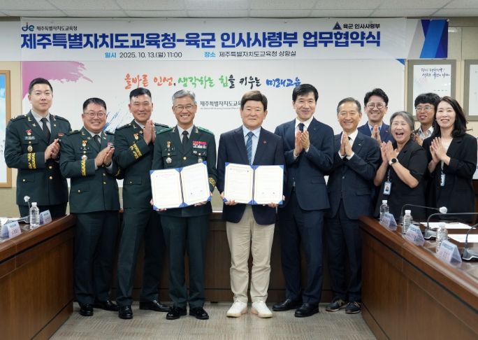 [비건뉴스=최지영 수습기자] 제주특별자치도교육청은 13일 도교육청 상황실에서 육군 인사사령부와 고등학생들의 진로 탐색 기회 확대를 위한 업무협약을 체결했다.