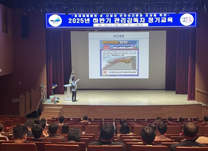 [비건뉴스=최지영 수습기자] 예산군은 지난 13일 군청 추사홀에서 중대재해 예방과 안전한 근로환경 조성을 위해 ‘2025년 하반기 관리감독자 집체교육’을 실시했다고 밝혔다.