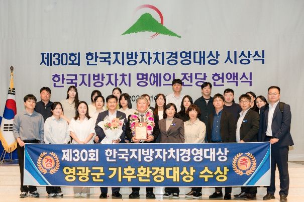 [비건뉴스=최지영 수습기자] 영광군이 지난 14일 (사)한국공공자치연구원이 주관한 ‘제30회 한국지방자치경영대상’에서 기후환경대상을 수상했다.