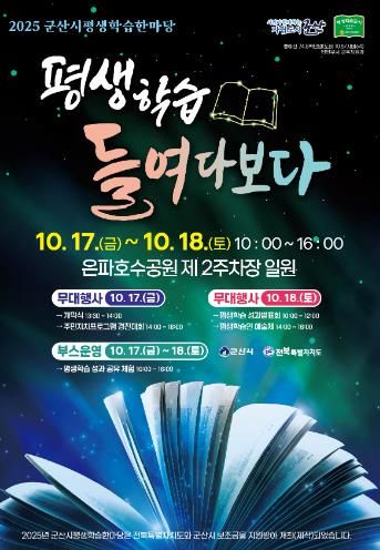 [비건뉴스=최지영 수습기자] 군산시가 17일~18일 2일간 은파호수공원 제2주차장 일원에서 ‘2025년 군산시평생학습한마당’을 개최한다.